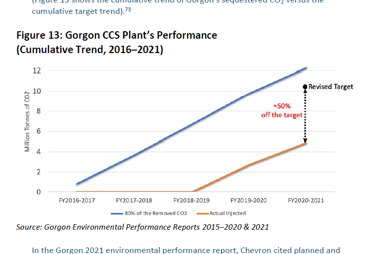 “In the 12 months to June 2022 Chevron injected underground just 1.6 million tonnes of reservoir CO2 and vented to the atmosphere 3.4 million tonnes”