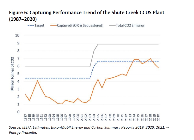 Often, these projects don’t actually end up capturing anywhere near as much as they’re touted to. I’ve collated examples from the IEEFA report below, but a key one is Chevron’s Gorgon project in Western Australia. A recent report in the Sydney Morning Herald outlined the scale of the problem: