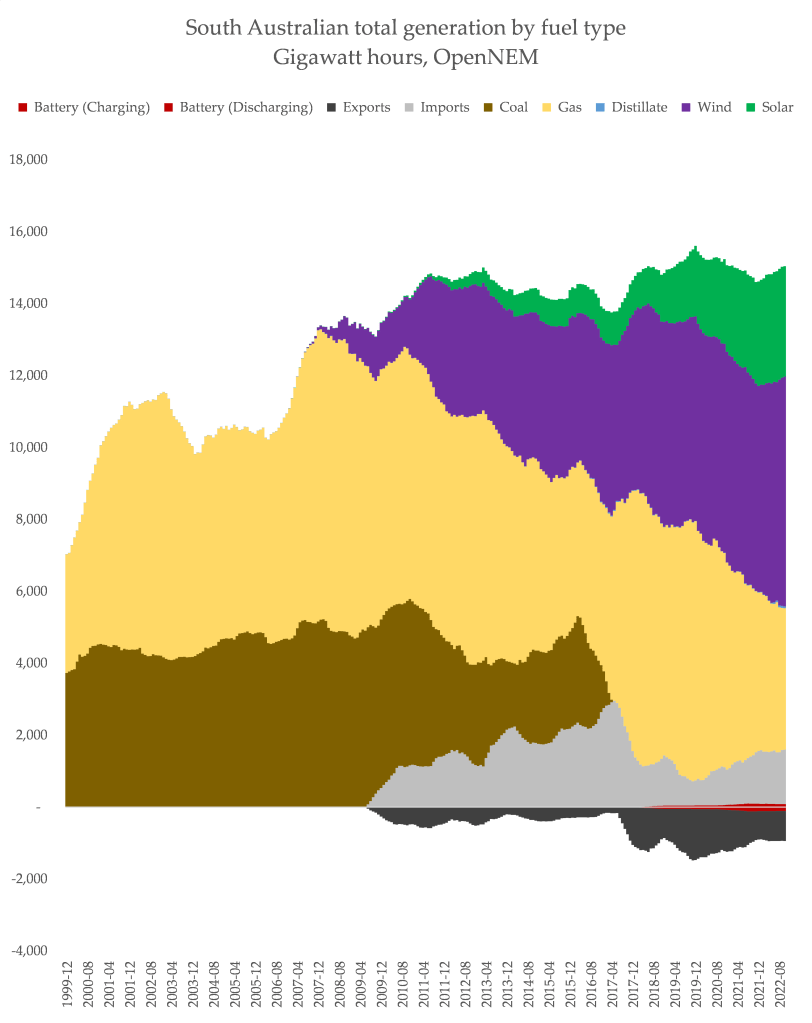 SA’s growth of wind and solar has been smooth, enabled by the patient work of hundreds of engineers, experts and advocates over the past decade. Elon Musk did not save South Australia, but he certainly behaved like he did. Yes – the battery system helped (including a recent grid damage event with echoes of 2016), but batteries in South Australia control grid frequency during sudden trips, rather than storage and generating large volumes of energy (like a hydro plant). They do some things. Not all things.
