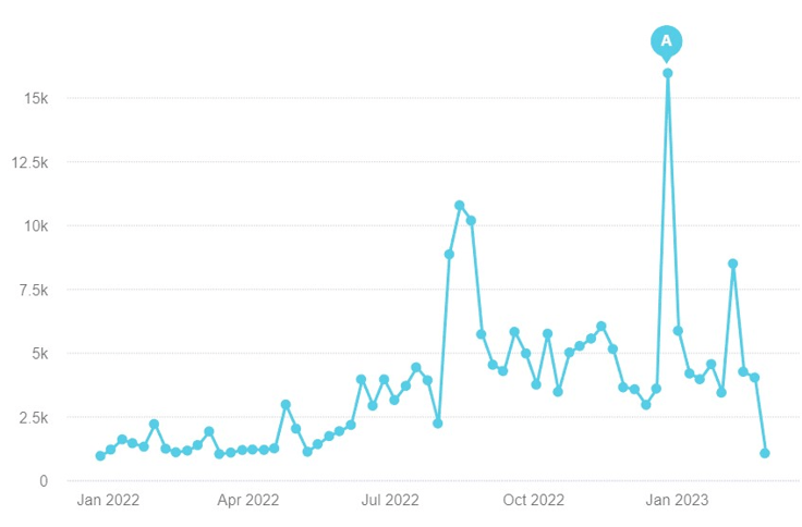 Berlin-based researcher Travis Brown has been tracking various changes at Twitter under Musk’s rule; particularly how the roll-out of the paid service ‘Twitter Blue’ has been going (I did an ad-hoc data snapshot of climate denial among Blue accounts, and…it’s bad). Being able to pay a tiny fee to simulate trustworthiness and get boosted into prominence in both algorithmic feeds and the sorting of replies on Twitter is invaluable for climate deniers.