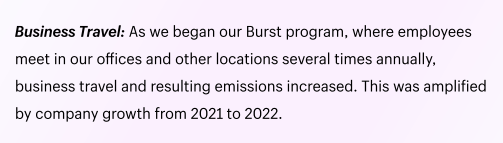 For the emissions they do count, which is their own direct office emissions, business travel and home office, they buy up carbon removal credits to claim they are “carbon neutral”.