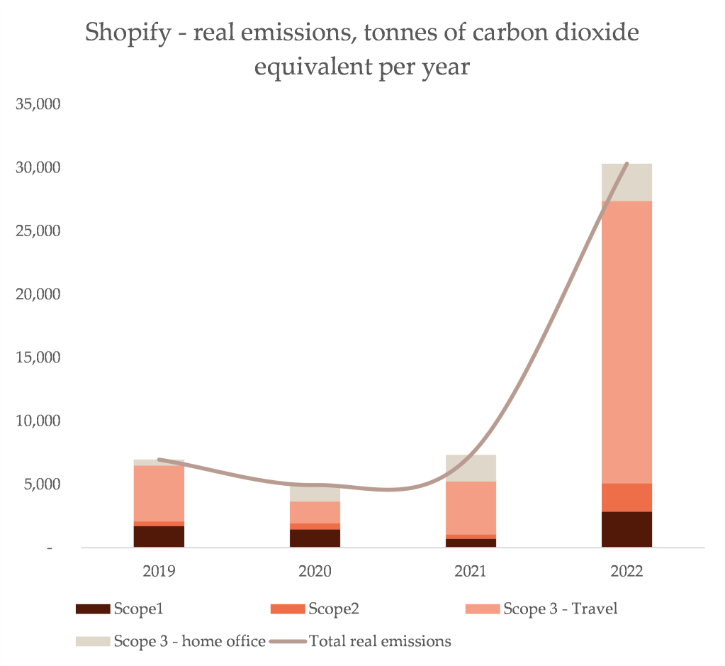 Yes, you read that right. Shopify’s emissions ballooned five times in the space of one year because, after COVID19, the company deliberately incentivised its staff to fly on planes.