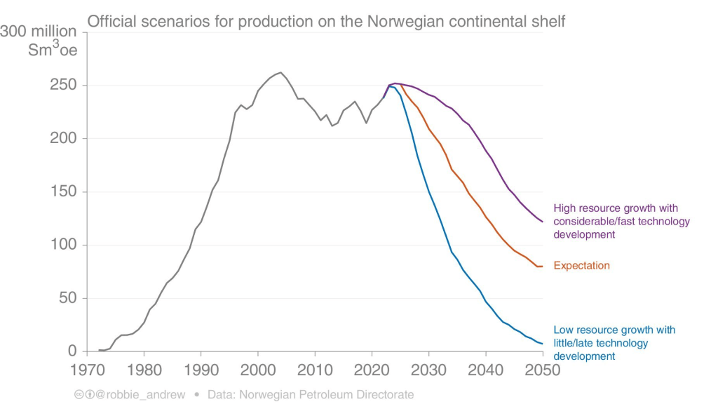 Which leads to the fairly reasonable conclusion that Glen states: “Based on history, there is little evidence that Norwegian oil & gas production will fall as forecast. Continued investment & technology evolution will make these forecasts wrong”.