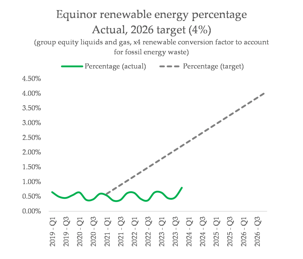 Equinor use ambitious targets to defuse criticism of its current actions, and then set about ignoring those targets until they’re forgotten, after which they’re quietly deleted. A nice example is the target they set a few years ago, to sell 4% clean energy of their total sales by 2026, which has vanished from view.