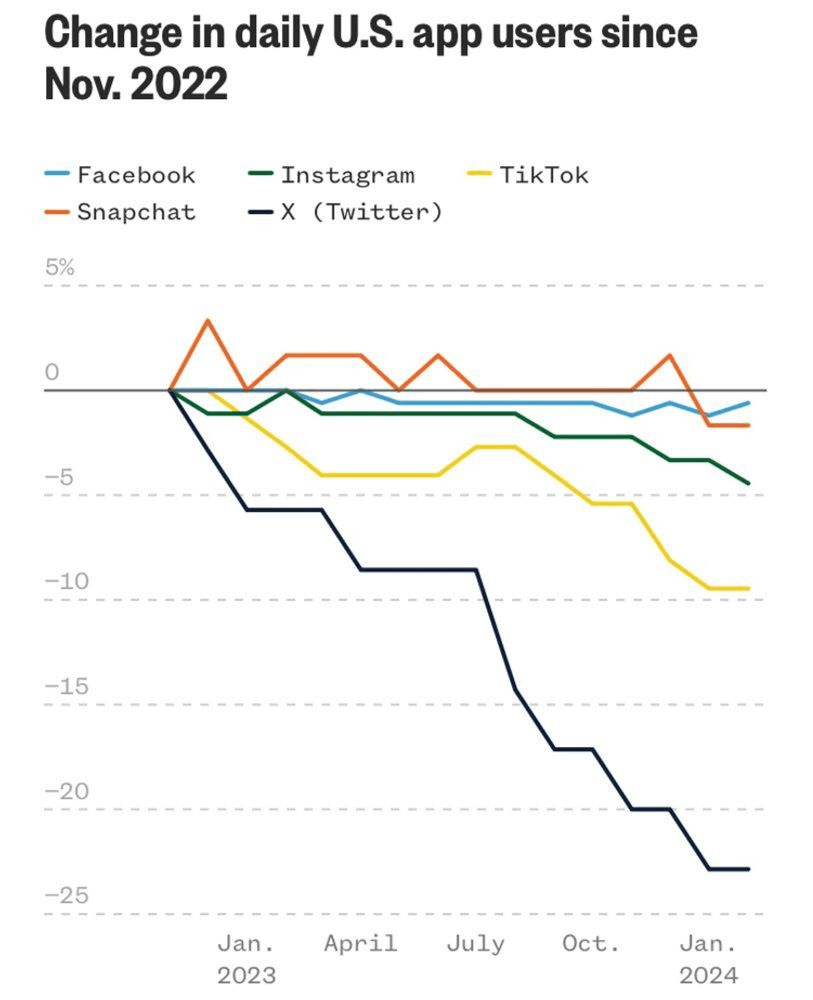 We don’t have the luxury of sitting back and observing the consequences of this hybrid social media monster. Least of all in a year where half of the world is voting in elections. X’s shallow decline needs to be a steep cliff.