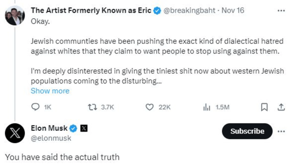 This paragraph from Ed Zitron’s fantastic newsletter post on Musk is still only a tiny fraction of all the right-wing nastiness rising in volume and intensity on X: