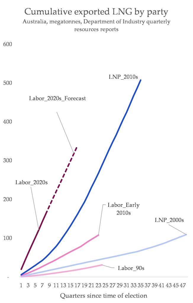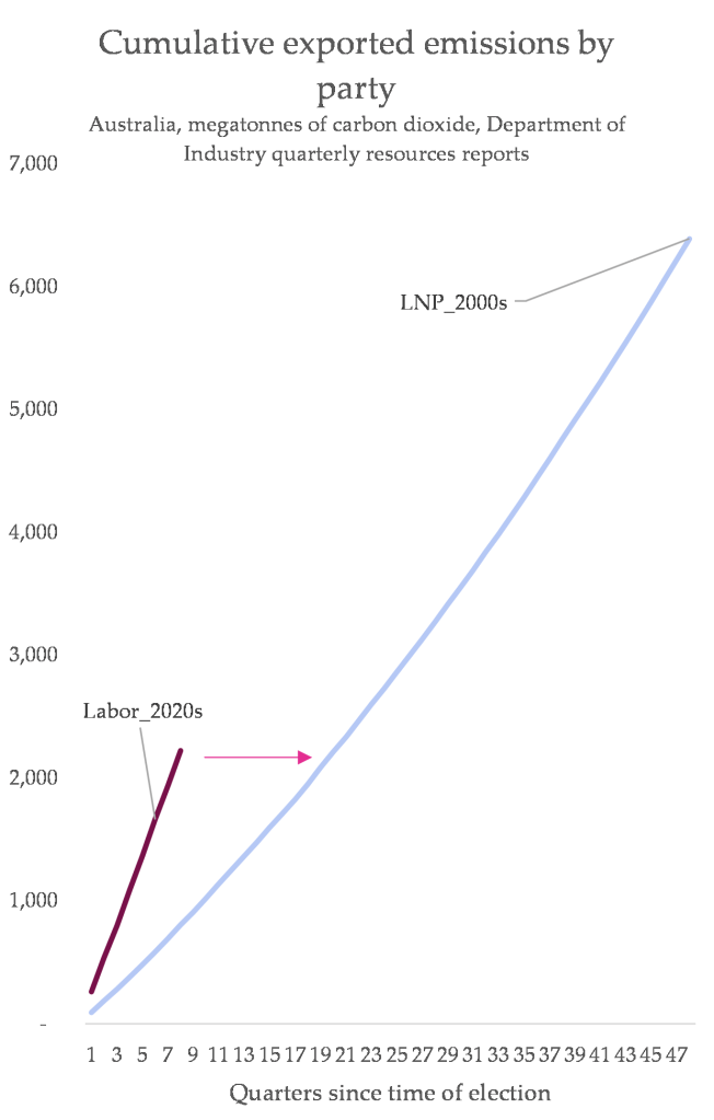 To summarise: the Albanese government has overseen the export of more fossil fuels in their first two years than every government prior did in the same time period after being elected.