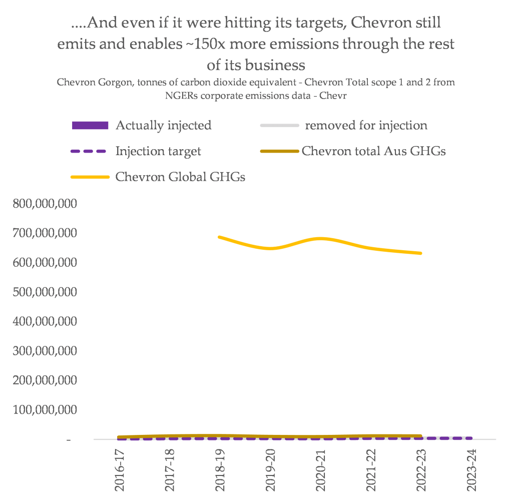 Chevron has to remove carbon dioxide from the stream of gas it’s pulling from underground, because it has to separate it from the methane it wants to sell. But of the 5.3 megatonnes it removed to be injected underground in 2023-24, only 1.6 actually ended up underground. The rest? Vented into the atmosphere. Since it began operation seven years ago, two thirds of all of the carbon dioxide ‘removed for injection’ has been pumped into the planet’s atmosphere. Gorgon, the CCS “success story“.