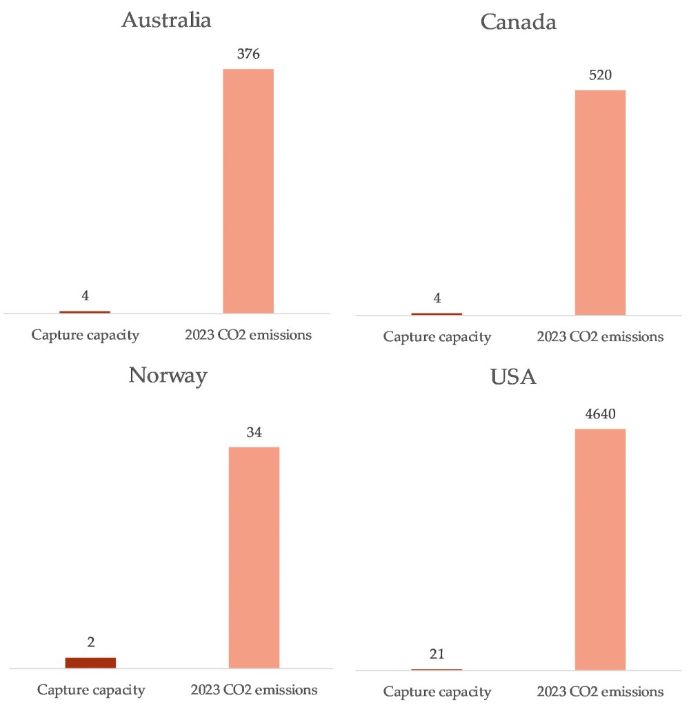 This recent report from Oil Change International puts together the vast sums of public money that have gone towards incentivising CCS – and I’ve added a second graphic showing, for each of the major funders with operational CCS, how the emissions avoided compare to actual emissions for each country: