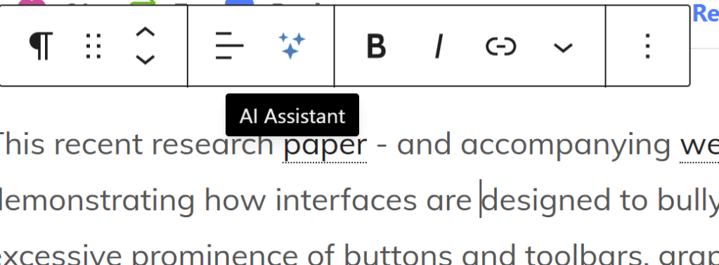 WordPress ranks its slop machine as important in prominence as text alignment and formatting