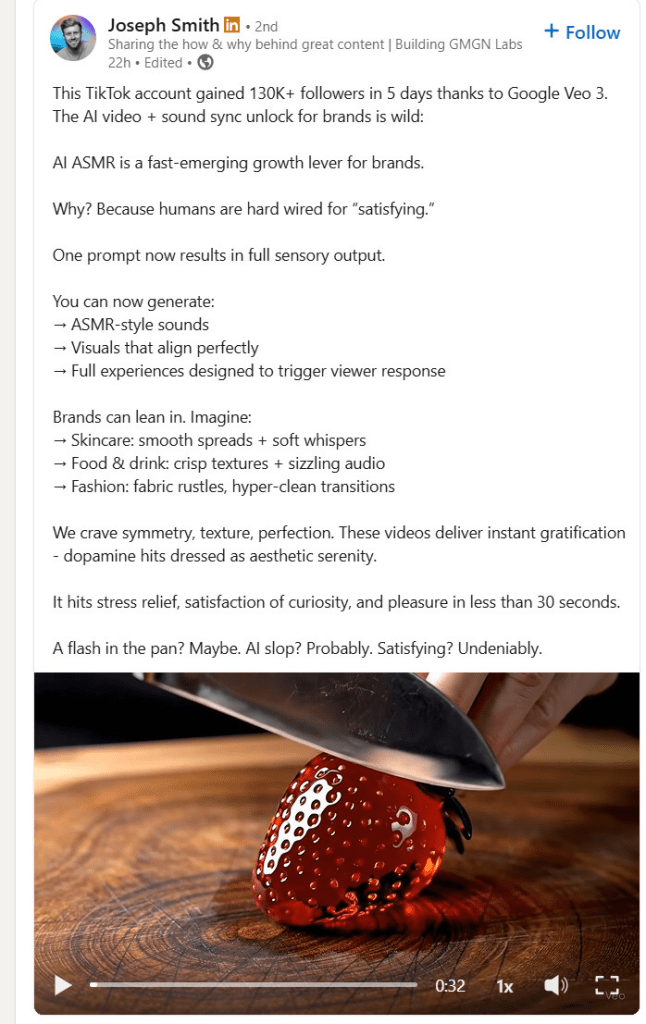 Something useful here is that Google have made it clear they’re perfectly capable of determining the very specific energy consumption of generative systems. They could share the same information about images and video, but they choose not to. I think that’s telling enough.