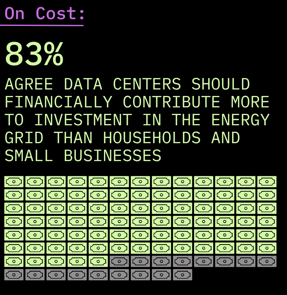 If you are concerned that carpet bombing power grids with city-sized data centres during an affordability and climate crisis is maybe kind of a bad idea, Beyond Fossil Fuel’s survey confirms that you are not alone.
