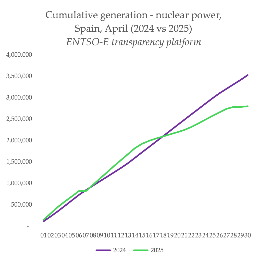 Or, to demonstrate it another way – you can compare April’s nuclear power generation between 2025 and 2024: